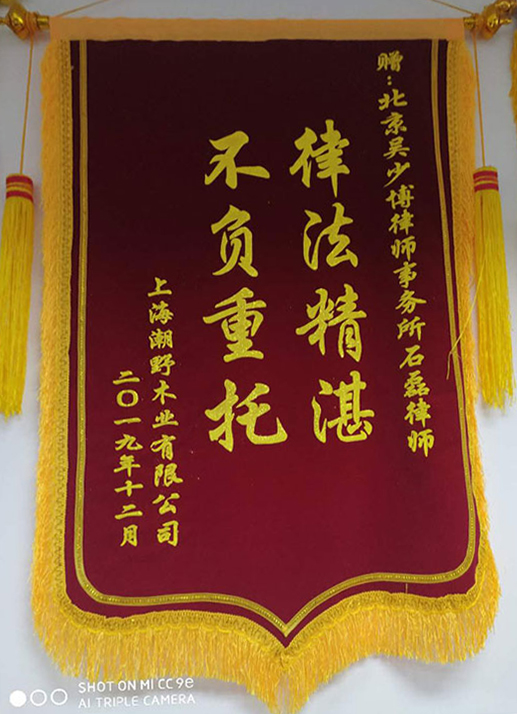 趙國兵收到石家莊嘉和廣場客戶贈送的錦旗